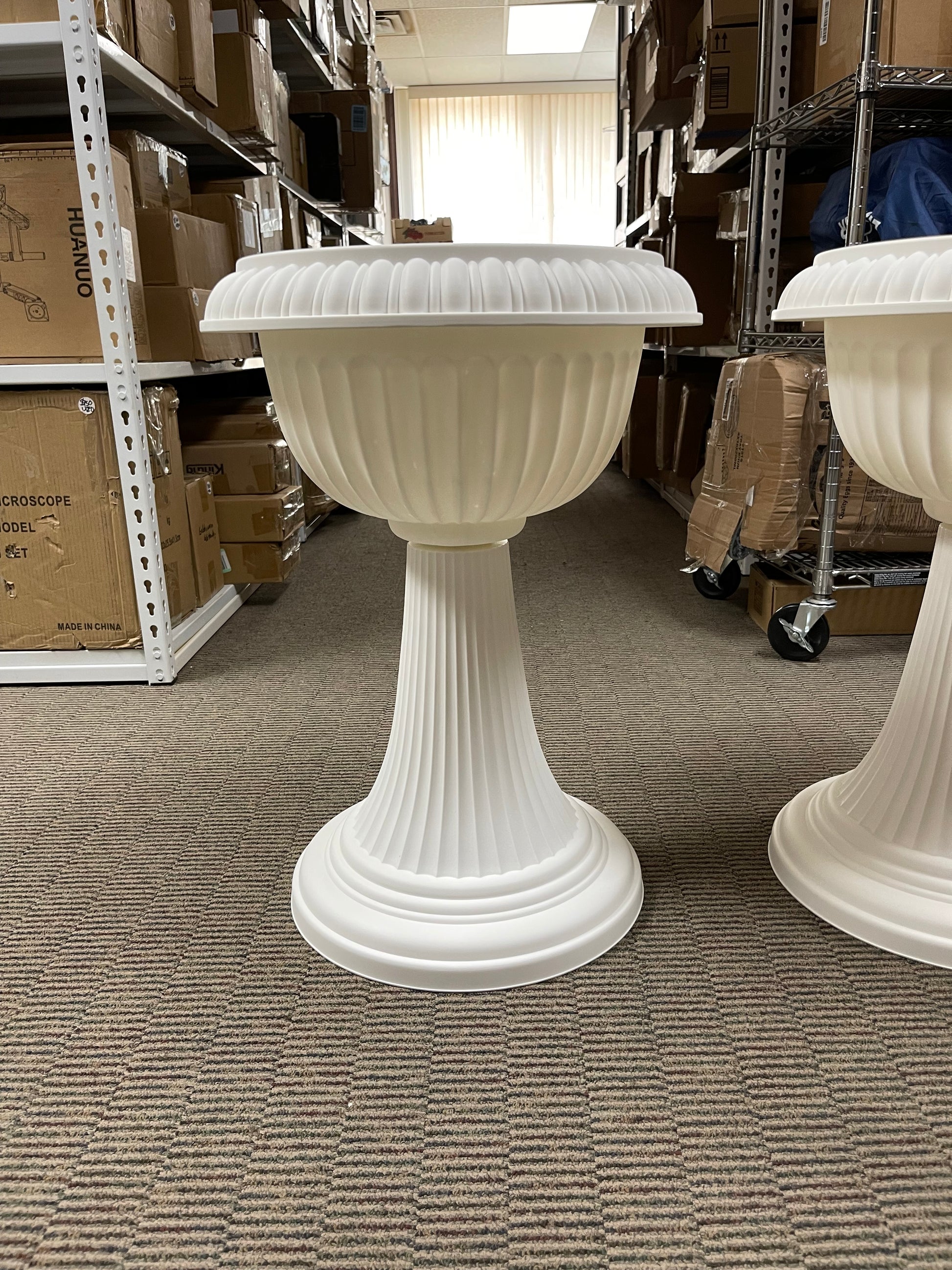 2 PCS White 18" Urn Planters – Tall Pedestal Flower Pots for Garden or Front Door