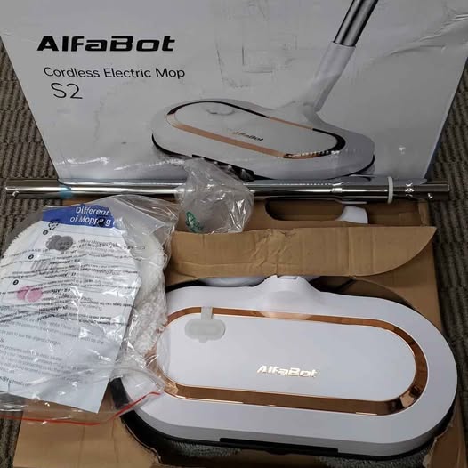 The AlfaBot S2 electric mop offers powerful dual-spin cleaning with cordless convenience. Designed for hardwood, tile, and sealed floors, it features a built-in water tank, LED headlight, and adjustable height for effortless floor care.
