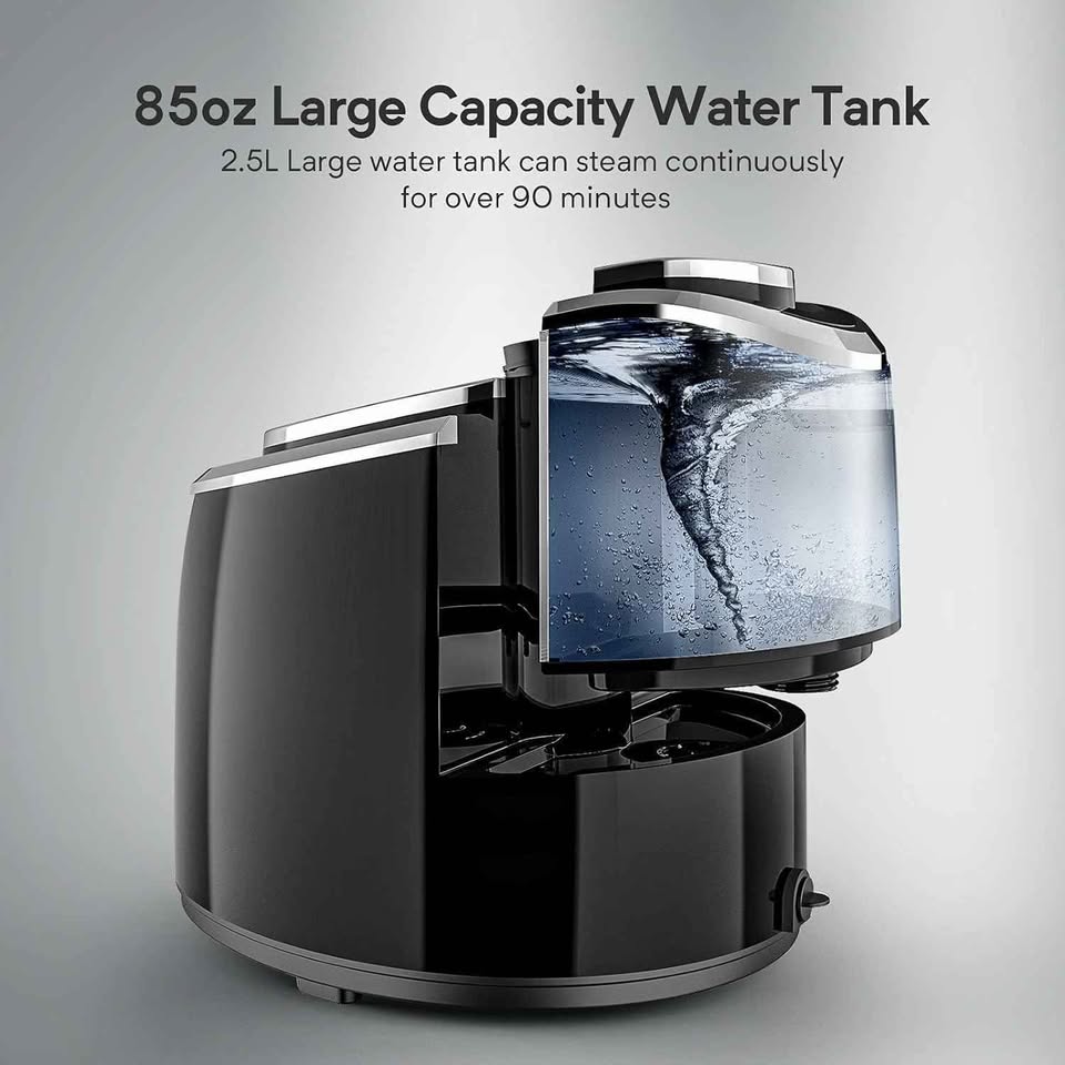• 2.5L large water tank provides up to 90 minutes of continuous steam