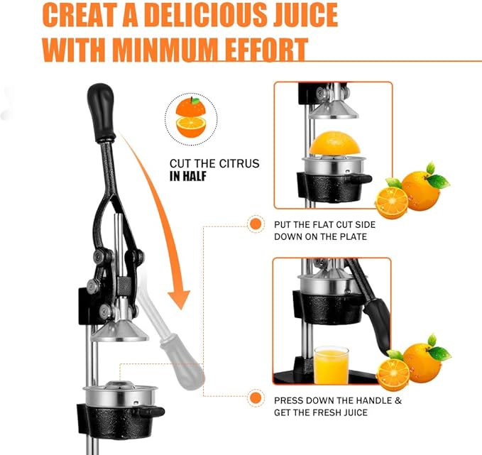 Gowintech Heavy Duty Manual Citrus Juicer – Cast Iron, Black