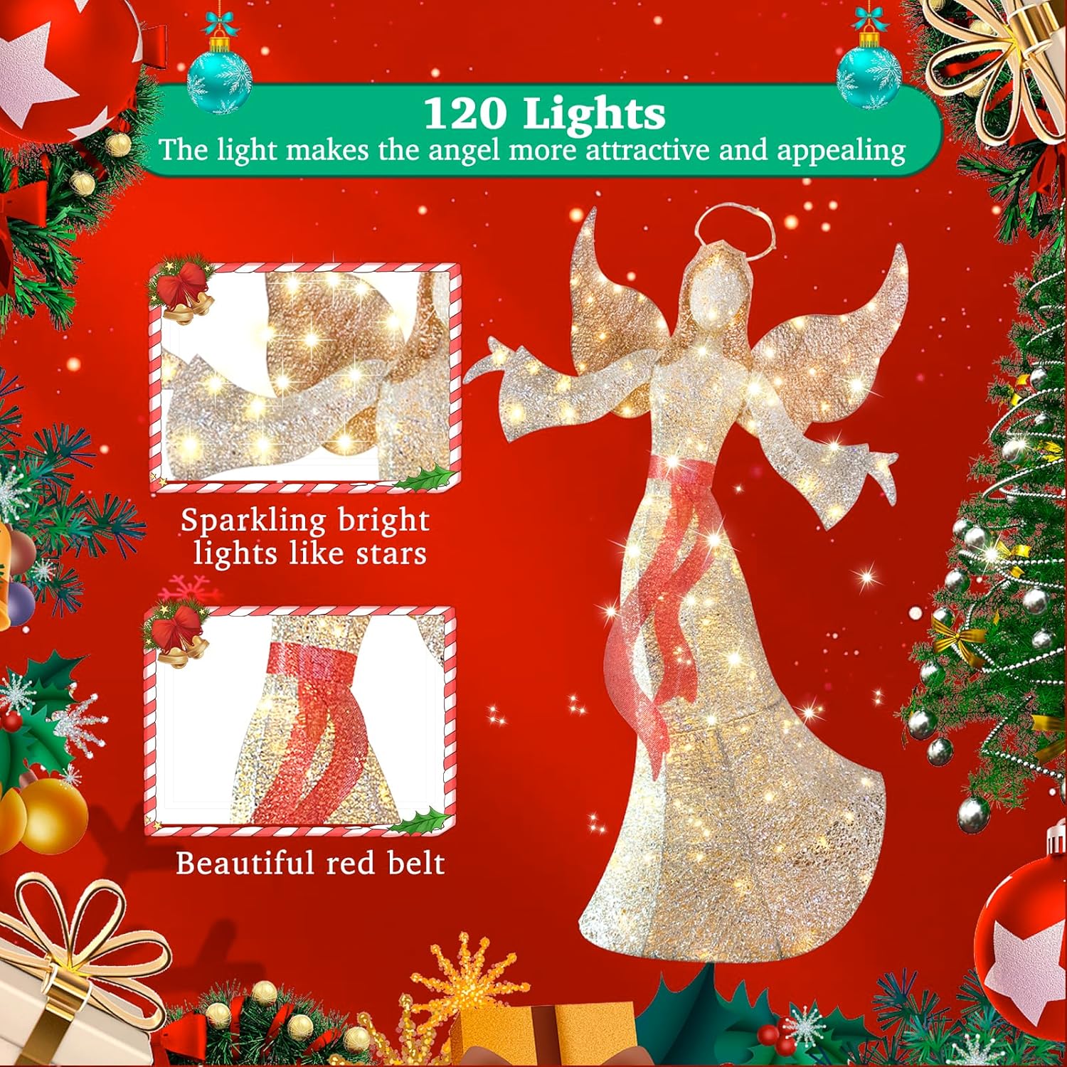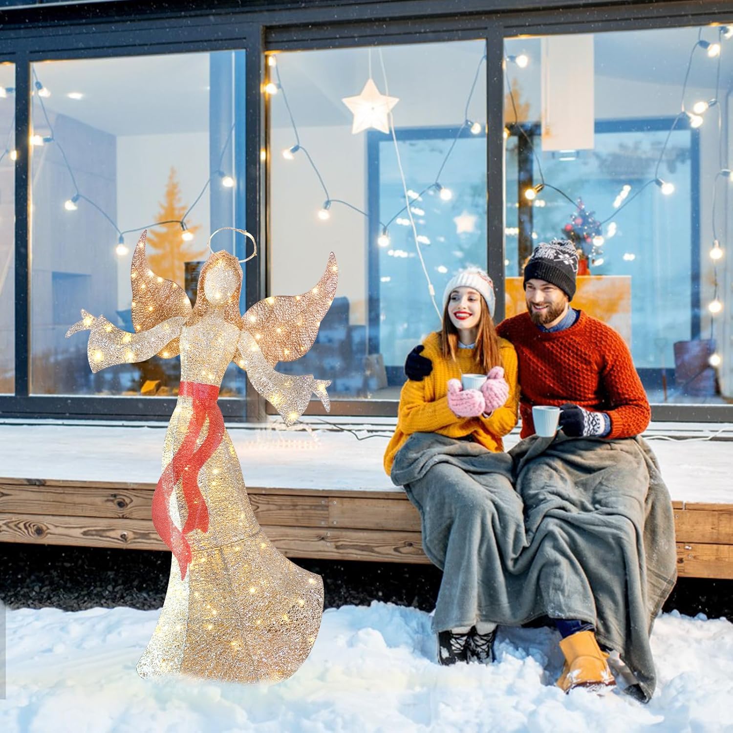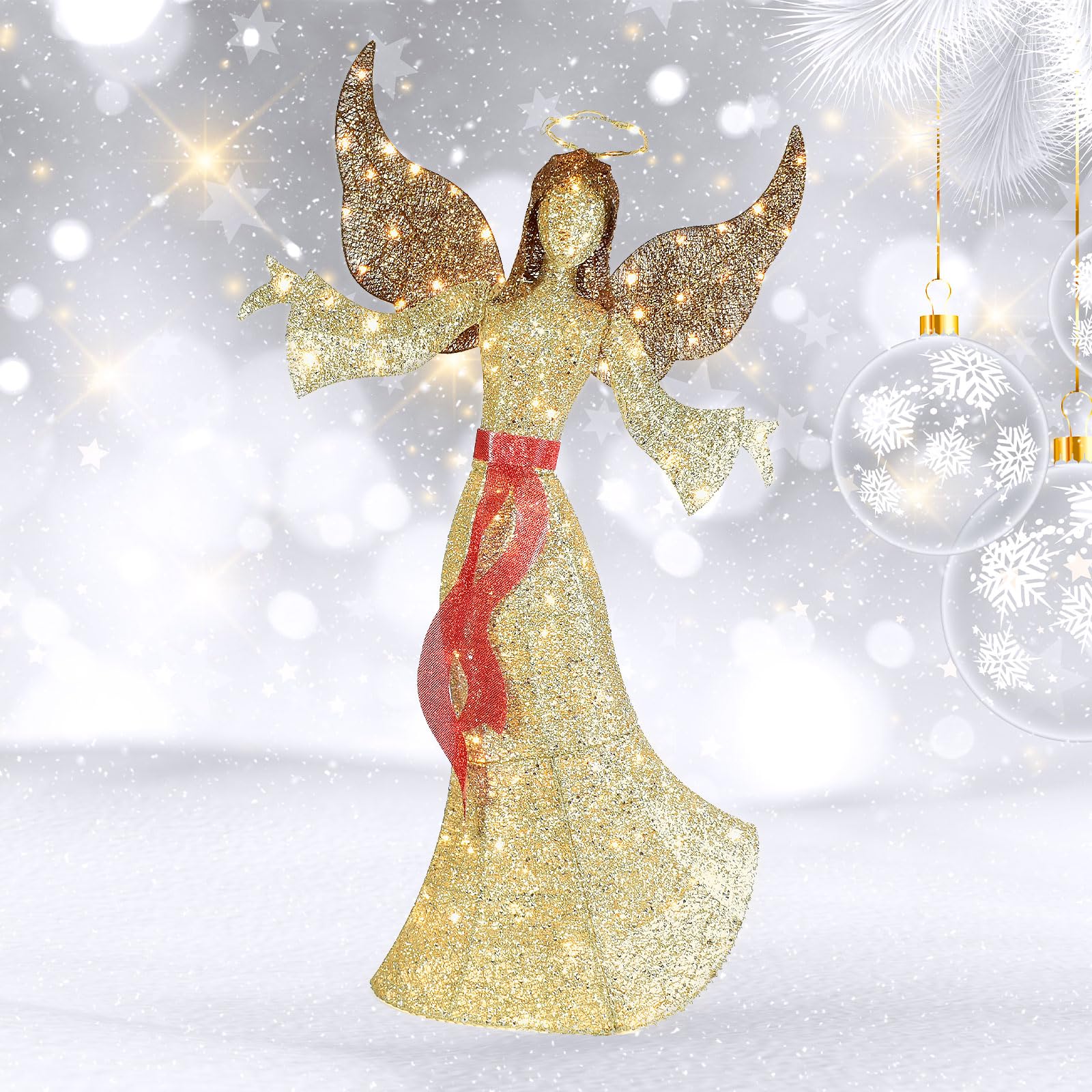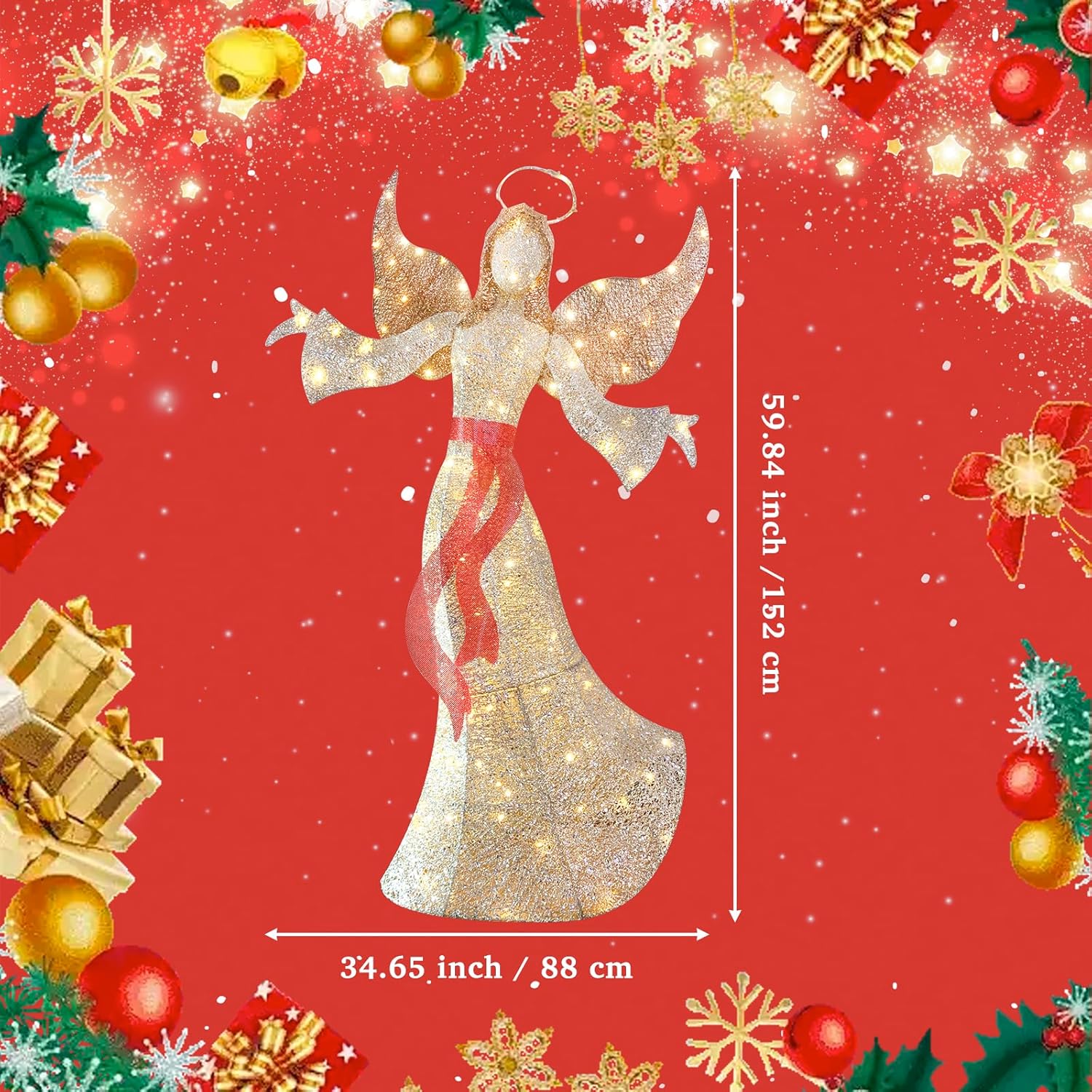 Add a heavenly touch to your lawn this holiday season with HOYECHI's 5FT Christmas Angels Decoration. Pre-lit with 120 warm white LED lights, this elegant winged figure comes with a halo, bow, extension cord, and ground stakes for easy set-up. Illuminate your outdoor space with this heavenly holiday accent.