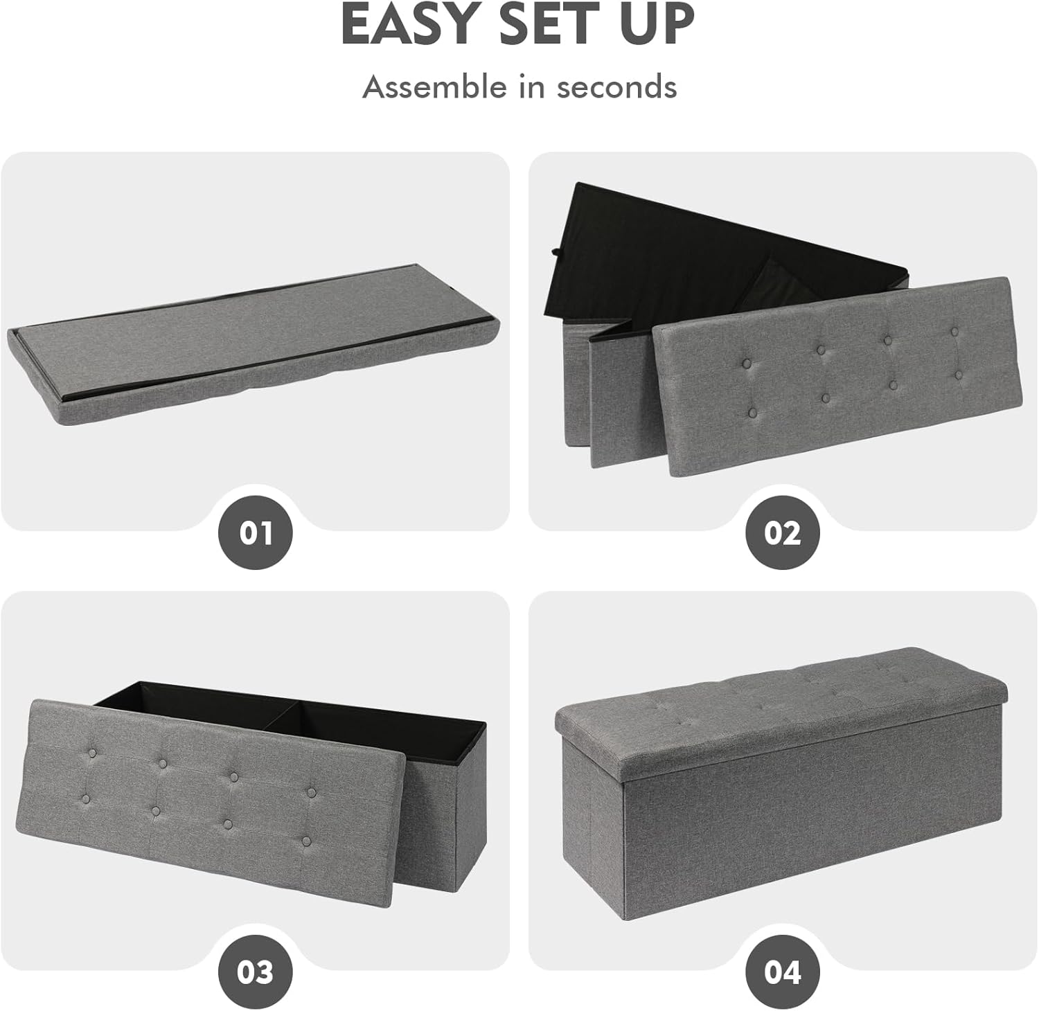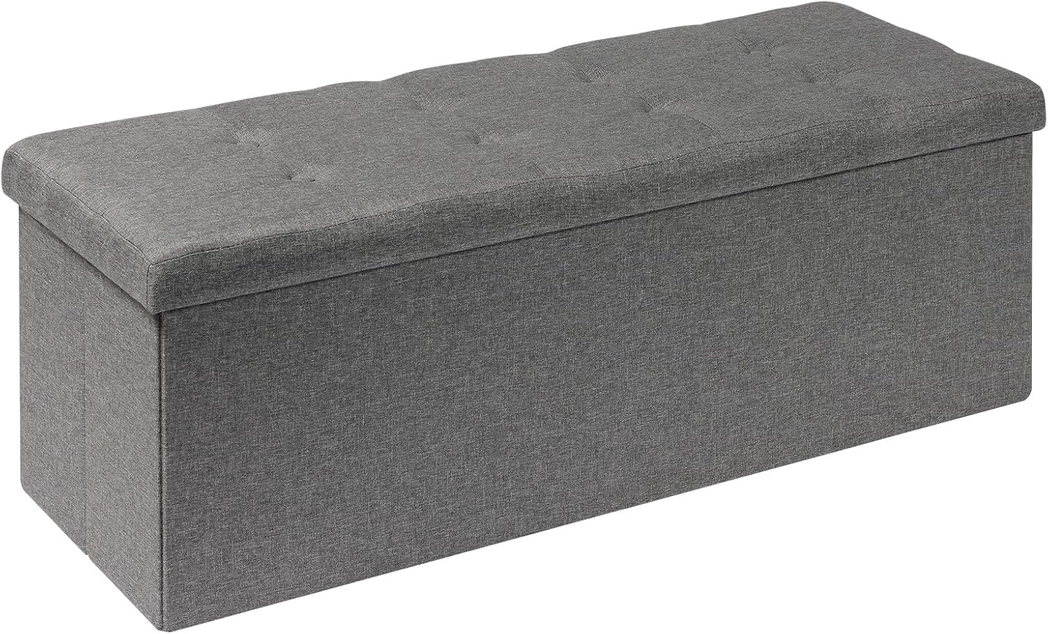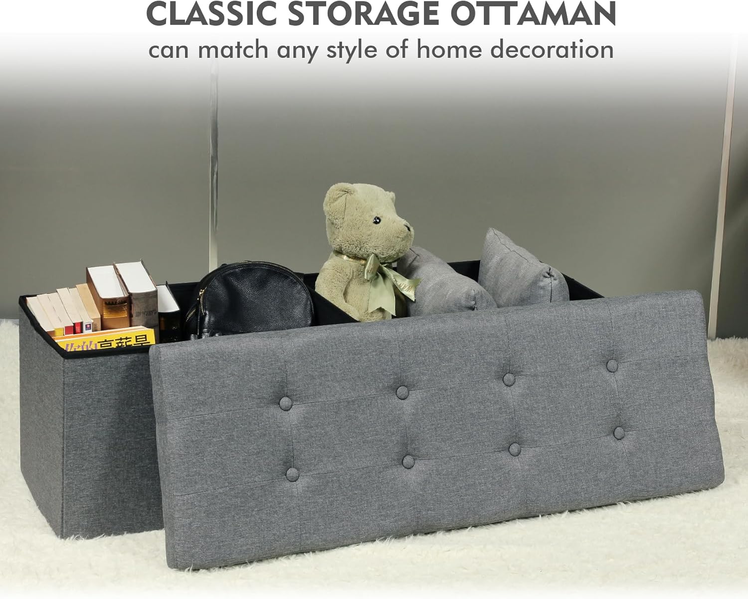 PINPLUS Folding Storage Ottoman Bench – Grey Linen, 43.3" Long