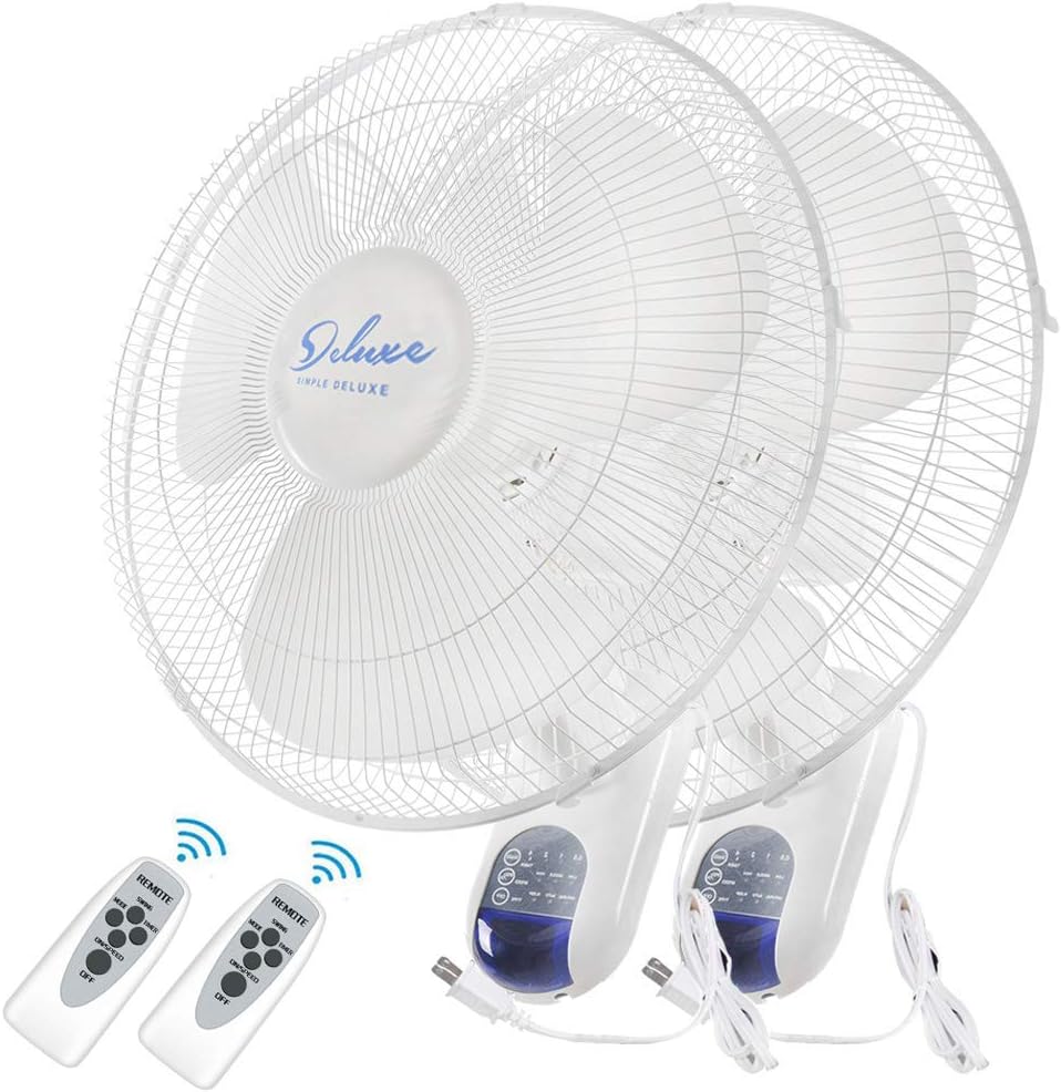 Simple Deluxe 16" Wall Mount Fan with Remote – 2 Pack