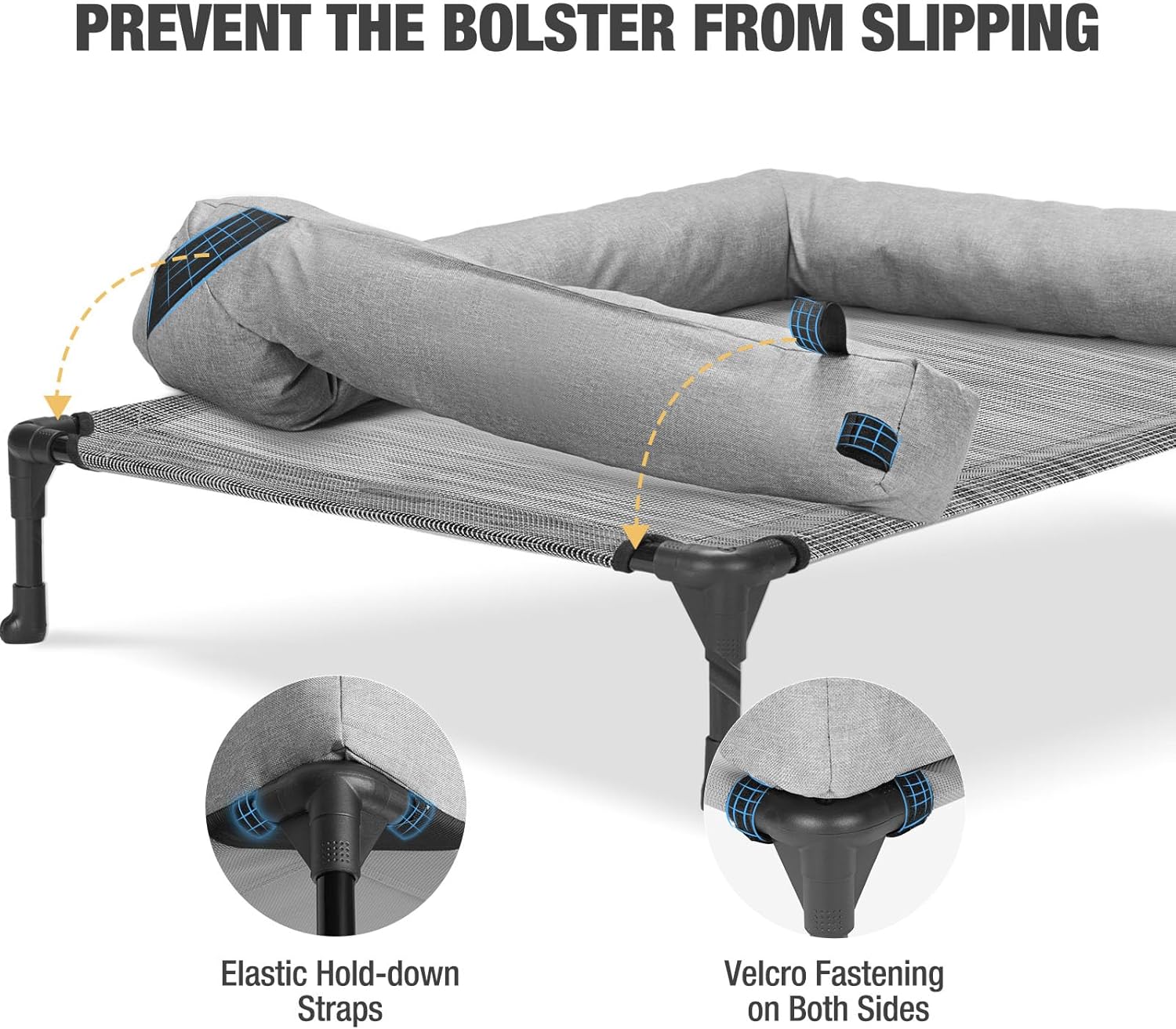 Veehoo Elevated Dog Bed with Removable Bolster – 125 x 83 x 33 cm (Black/Silver)