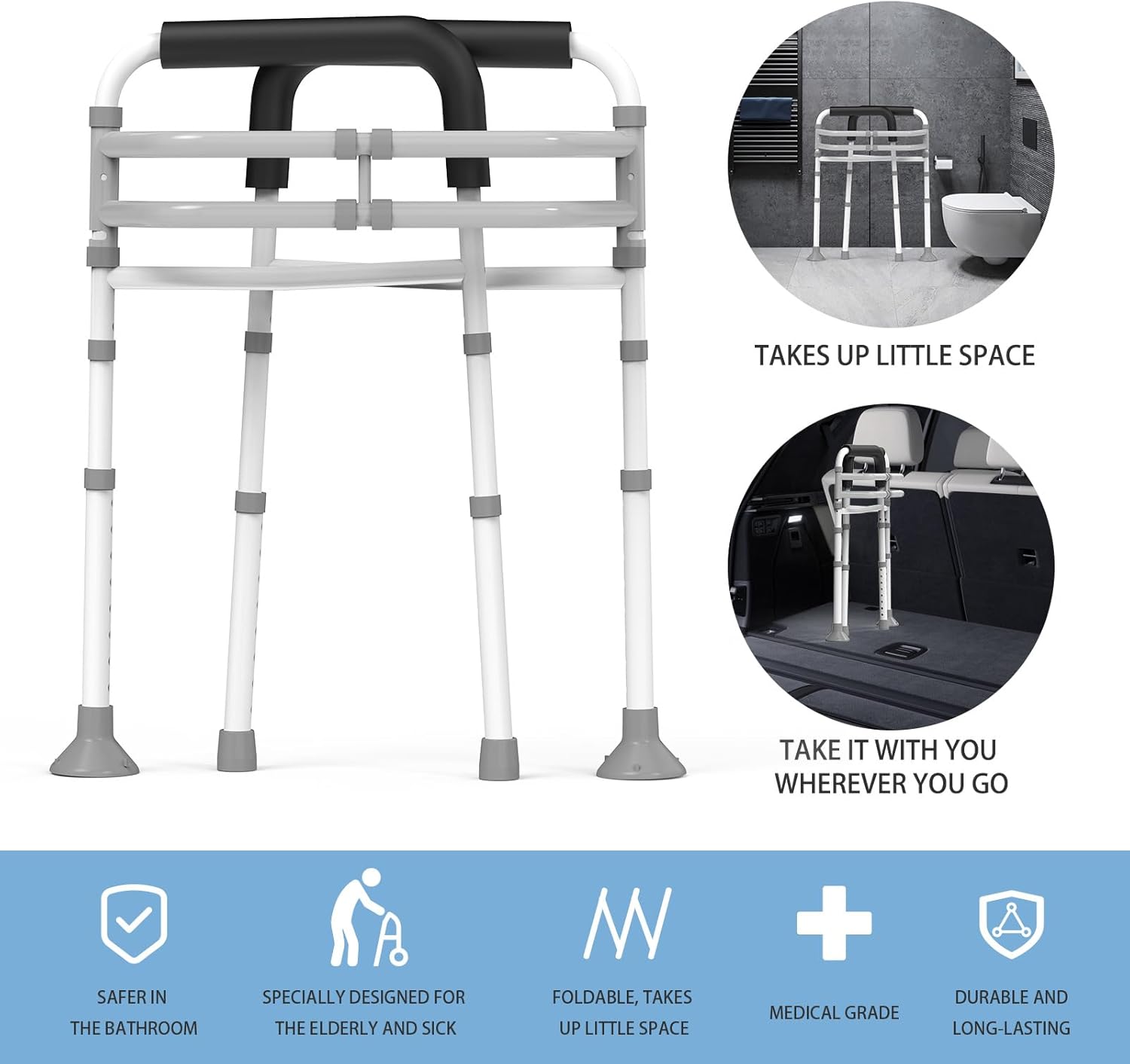 Increase safety and independence with the WISDEER Toilet Safety Rails Stand Alone. Adjustable and detachable, these heavy-duty rails fit most toilets and provide support and stability for elderly and handicapped individuals. The ergonomic handles make it easier to stand and sit, promoting confidence and reducing the risk of falls.